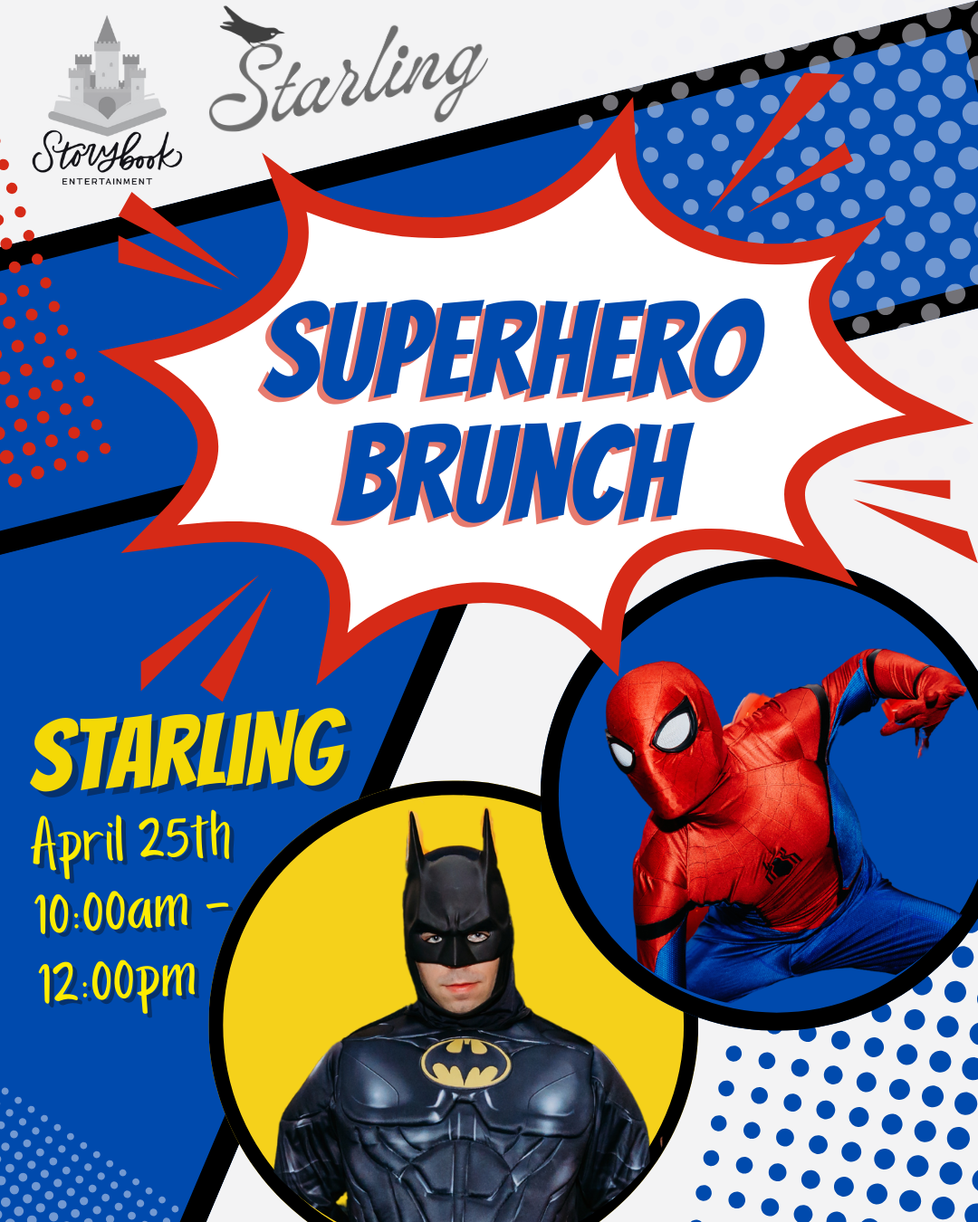 Calling all little heroes! Get ready for a super-powered morning of fun at Starling with our Superhero Brunch, featuring two fan-favorite heroes: Batman and Spider-Man!